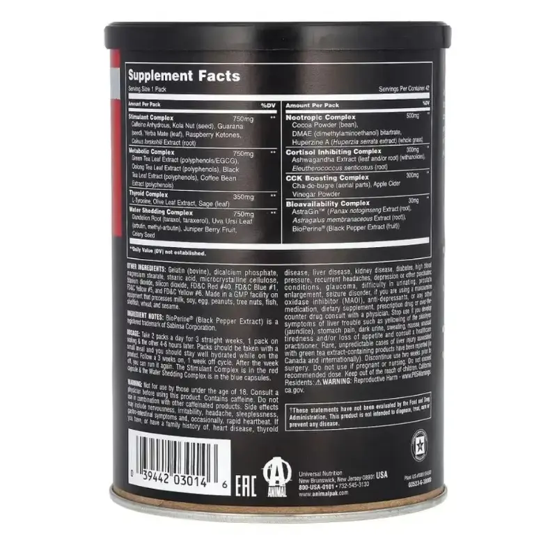 El laboratorio Universal Nutrition siempre destaca por querer llevar sus productos por encima del promedio, Animal Cuts por supuesto no seria la excepción, su formula es un completo complemento para apoyar los procesos de perdida de peso y definición muscular más exigentes. Sus ingredientes no solo te permitirán oxidar más grasa, sino que adicionalmente podrás reducir líquidos para obtener un mejor corte y por si fuese poco, esta formula cuenta con una matrix de ingredientes que te permitirá soportar la calidad de tus músculos para que te veas rayado pero con buena densidad muscular.