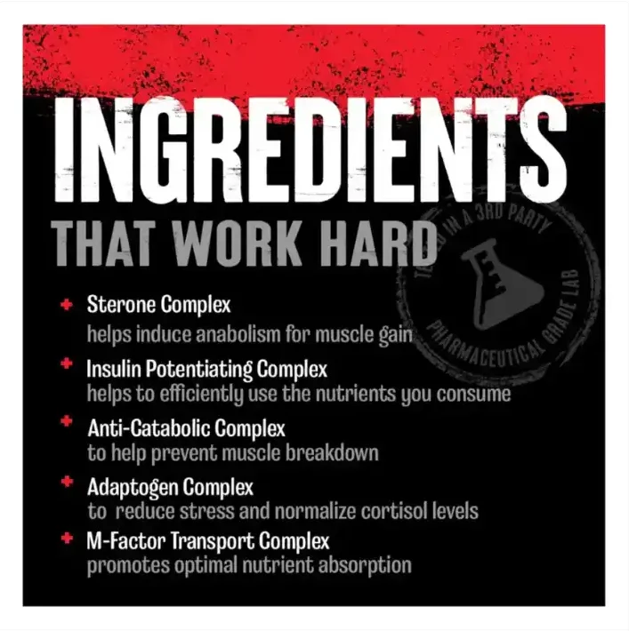 Animal M-Stak de Universal Nutrition está diseñado con un grupo de suplementos anabólicos no hormonales que puede ayudar al cuerpo a absorber más nutrientes y a desarrollar más masa muscular magra.