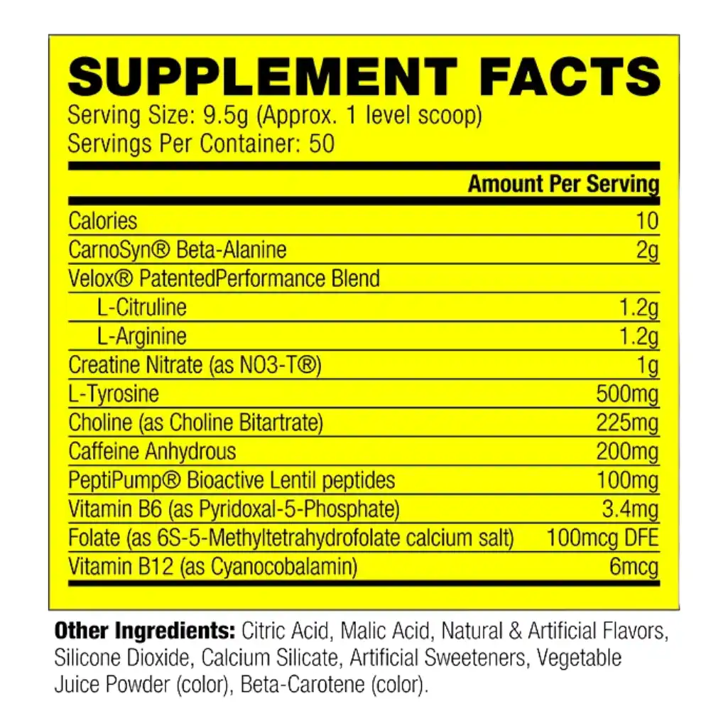 C4 es un pre entreno respaldado por una marca de trayectoria internacional, valorado por su poderosa fórmula que incluye ingredientes especializados en apoyar la concentración mental y la congestión muscular. C4 es ideal para entrenamientos exigentes, tanto en fuerza como en resistencia.
