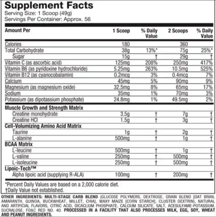 Energía explosiva: Los carbohidratos incluidos en la fórmula ayudan a reponer los depósitos de glucógeno, garantizando energía sostenida durante entrenamientos intensos.