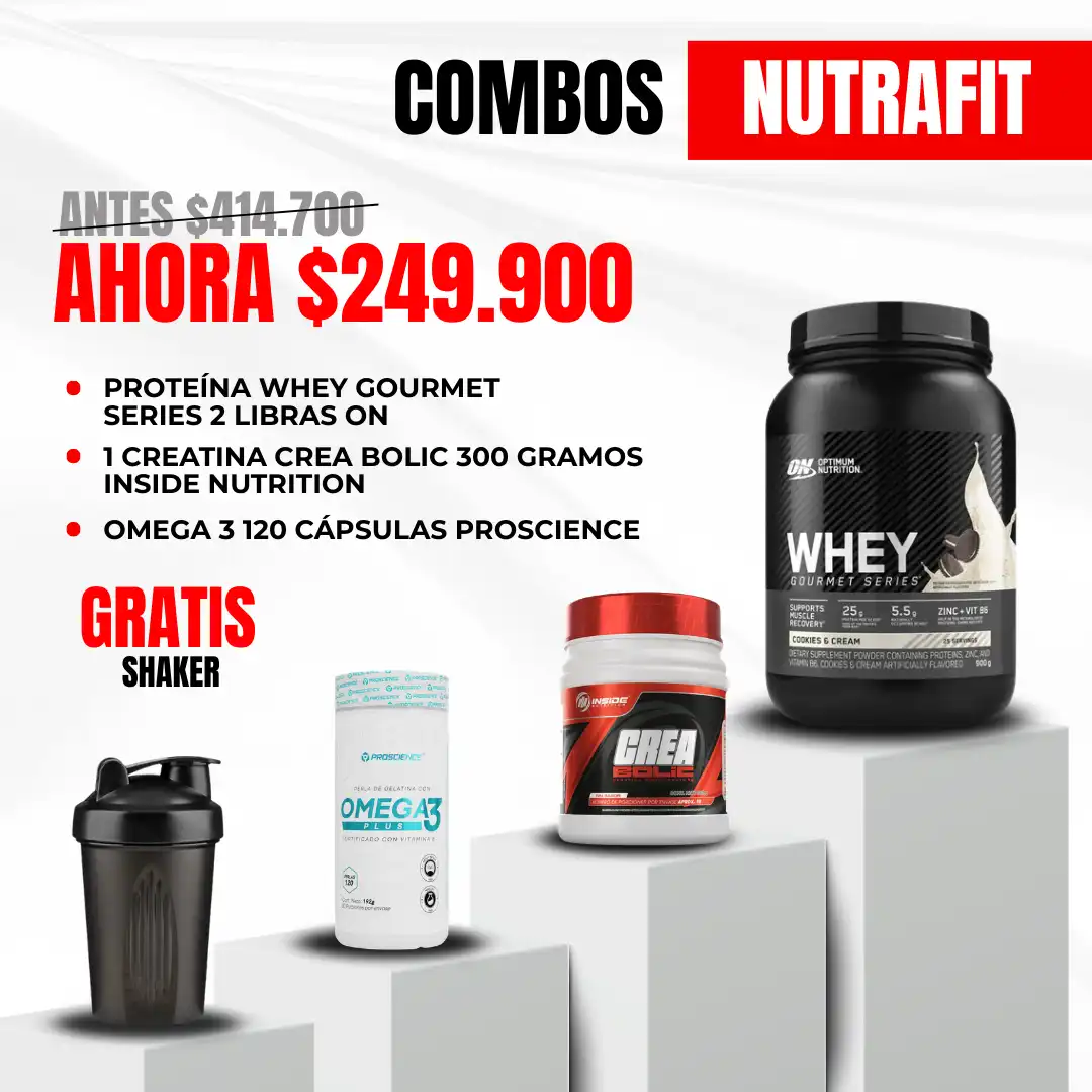 Este combo está pensado para quienes quieren mejorar su rendimiento, recuperación y salud general en un solo paquete. Combina proteína de alta calidad, creatina para fuerza y un apoyo cardiovascular con omega 3, logrando una fórmula completa y equilibrada para la rutina diaria