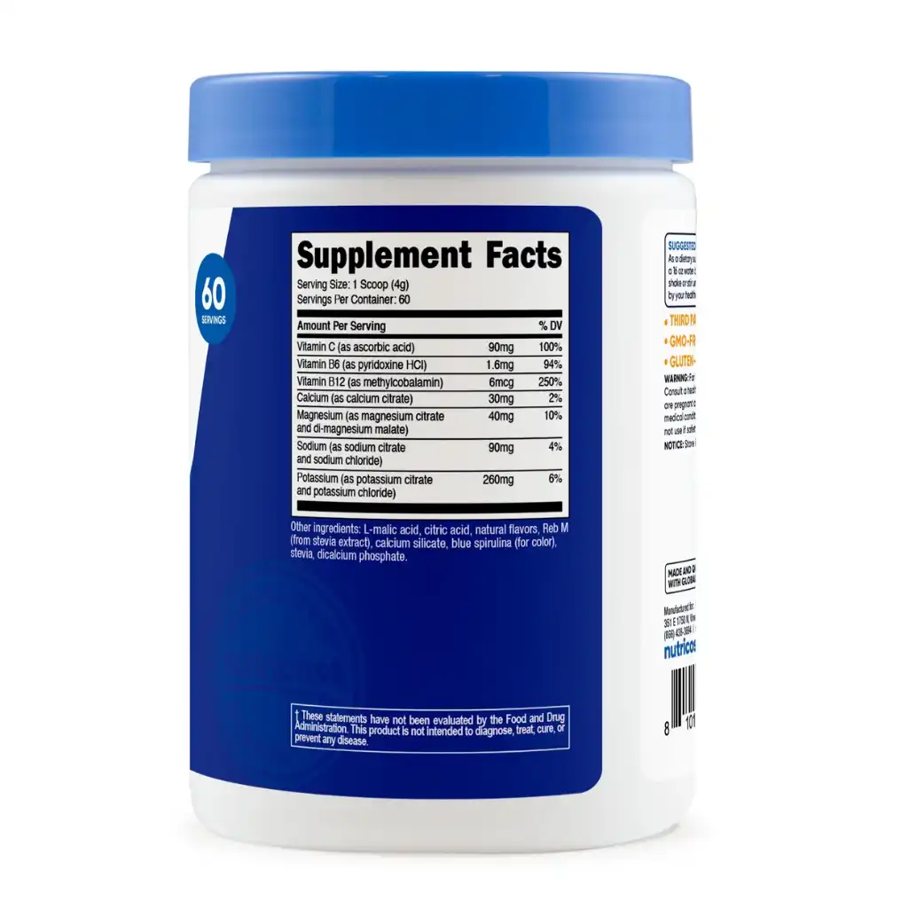 Electrolitos Complex de Nutricost está diseñado para reponer los minerales esenciales que el cuerpo pierde por el sudor y la actividad física. Su composición incluye una mezcla precisa de sodio, potasio, magnesio y calcio, junto con vitaminas clave que apoyan la función muscular y nerviosa.