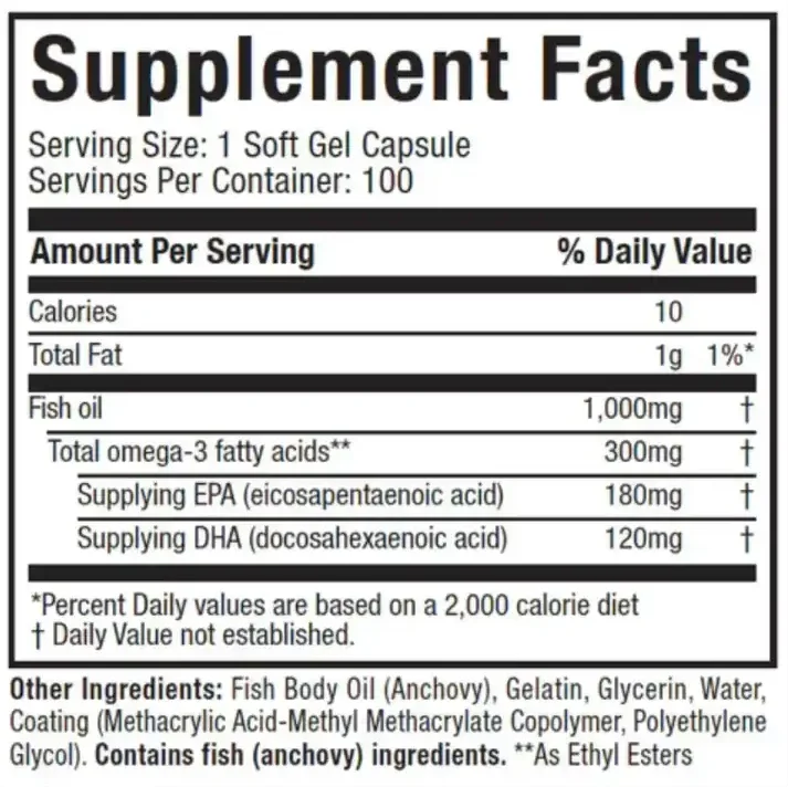 Platinum 100% Omega Fish Oil proporciona aceites de pescado ultrapuros, que son una excelente fuente de ácidos grasos omega-3, ácido docosahexaenoico (DHA) y ácido eicosapentaenoico (EPA). Los aceites de pescado ayudan a acelerar el tiempo de recuperación, quemar grasa corporal y promover el crecimiento muscular.