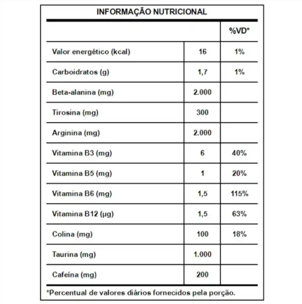 Cada componente cumple una función específica: la beta-alanina ayuda a retrasar la fatiga muscular; la arginina promueve una mejor circulación y entrega de nutrientes; la cafeína eleva el estado de alerta; mientras que taurina, tirosina y colina apoyan la concentración y coordinación motora.