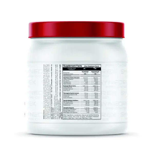El Pre Entreno Synedrex Pre Contest Metabolic Nutrition es una fórmula creada para quienes necesitan un nivel de intensidad superior en sus rutinas. Su combinación de estimulantes de alto impacto está diseñada para ofrecer una activación marcada, enfoque elevado y una sensación de energía profunda durante entrenamientos de alta exigencia física.