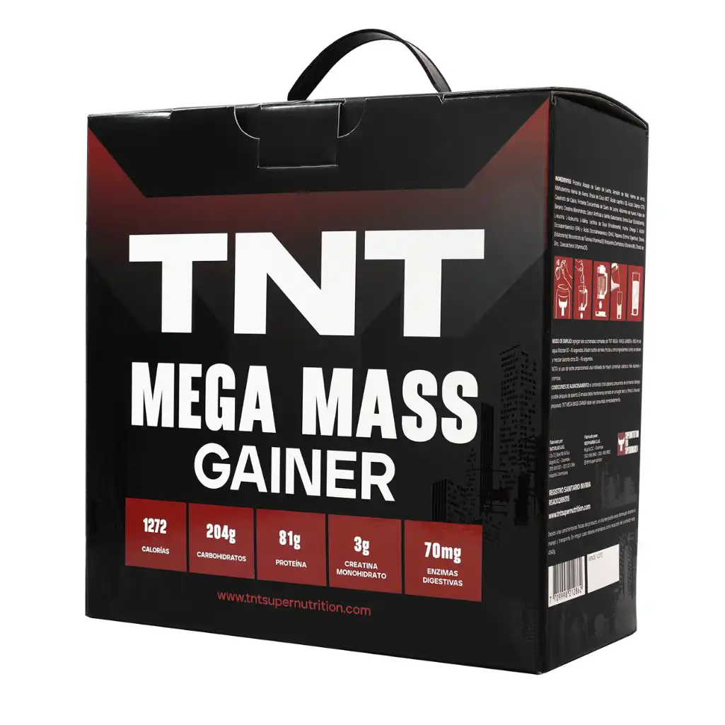 TNT Mega Mass Gainer es reconocido como uno de los ganadores de peso más completos del mercado gracias a su combinación de proteínas, carbohidratos y creatina en cantidades significativas. Cada porción ofrece 81 g de proteína de alto valor biológico, proveniente de diversas fuentes como suero de leche concentrado, aislado de suero, albúmina de huevo y caseinato de calcio. Además, contiene 204 g de carbohidratos con diferentes velocidades de absorción, ideales para un aporte energético constante durante el día.