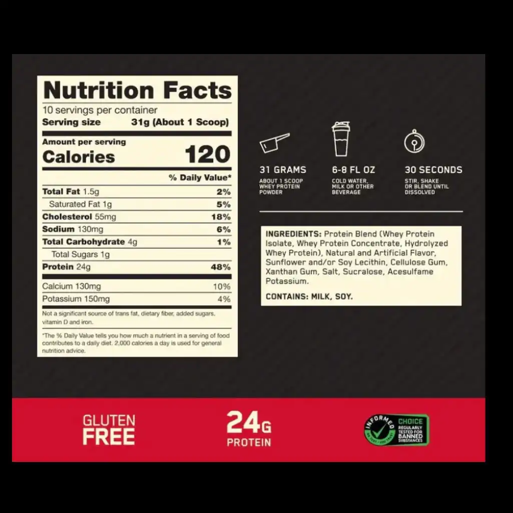 Al ser una proteína proveniente de la marca Optimum Nutrition, la cual pertenece a Glanbia (Multinacional de la industria fitness) hace que sea una marca de gran reconocimiento internacional y de gran respaldo. Normalmente este laboratorio somete sus productos a constantes y rigurosos análisis para garantizar que la calidad de cada tarro siempre esté ajustada a los valores nutrimentales ofrecidos en la etiqueta.